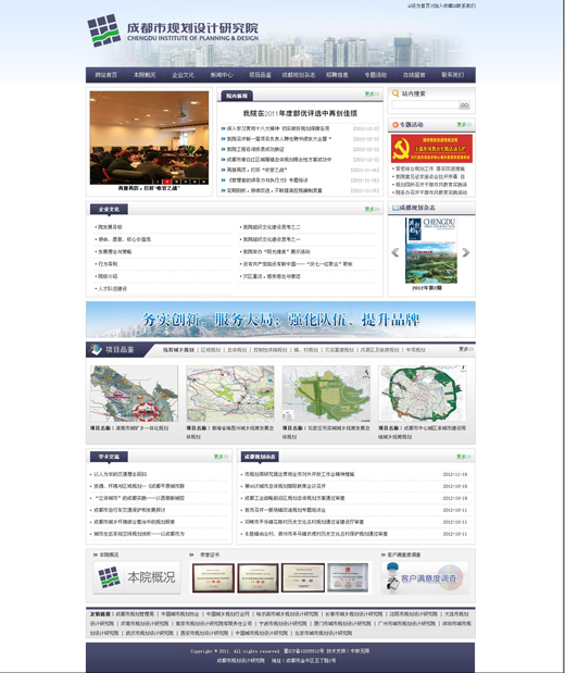 成都市规划设计研究院成立于1983年,是国家建设部批准的第一批甲级城乡规划设计单位,主要承担体系内各层次、各类型、各专业的城乡规划及工程咨询等技术服务和技术咨询,同时还承担有关城市建设的国家规范编制,部、省级课题研究,项目策划等工作。2005年我院就已通过了ISO9001质量管理体系认证。