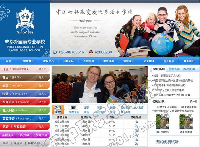 成都外国语专业学校简称“外专外语”,于1992年经教育局批准创立于成都,是西部 受欢迎的多语种学校。作为本土知名品牌,建校20年来,我校秉承“学以致用”的教学理念坚持聘请学院派归国教师和持有外专证的外籍教学团队联袂执教。已满足数十万莘莘学子的多元化需求,包括:留学、就业、晋升、考试、个人兴趣、出国探亲、企业团训、政府涉外等需求。