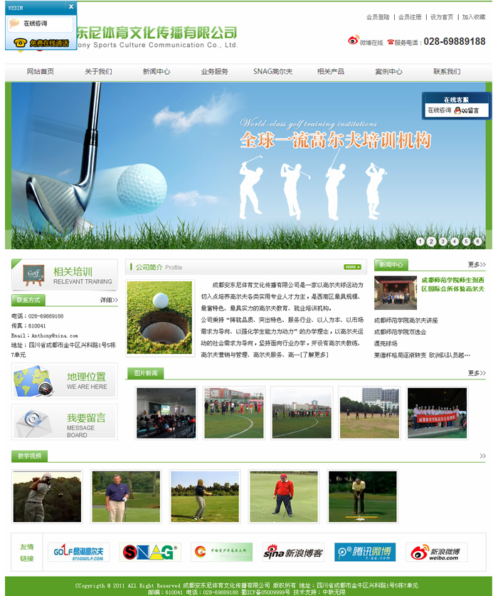 成都安东尼体育文化传播有限公司是一家以高尔夫球运动为切入点培养高尔夫各类实用专业人才为主,是西南区 具规模、 富特色、 具实力的高尔夫教育、就业培训机构。