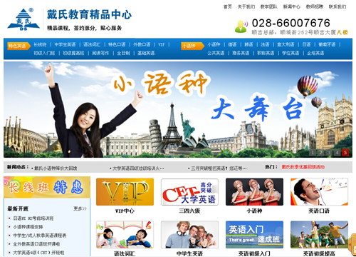 四川戴氏教育发展有限公司是戴氏教育旗下重要培训机构,专业从事英语口语职业技能培训、小语种口语职业技能培训。23年来,公司培训高端外语人才3万余人,学员深入到出国留学、翻译、大学及高中外语教师等领域。戴氏外语本着“服务好每一位学员”的教育理念,聚集了雄厚的中、外籍专兼职师资,让需要高品质外语培训学员不再找不到去处。